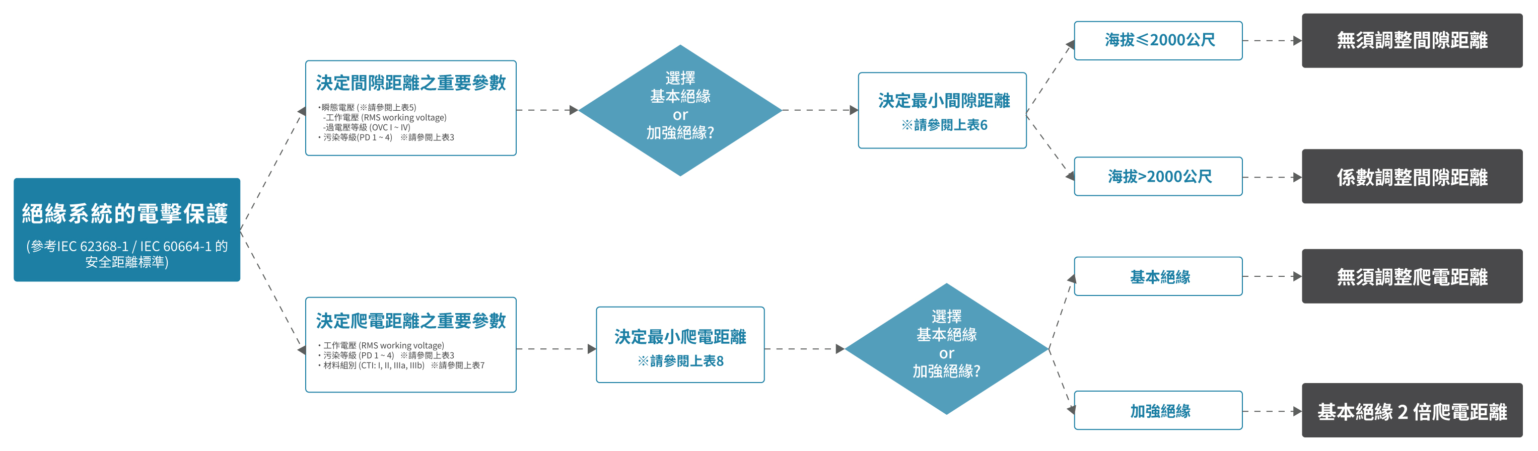這些距離設計需嚴格依據如 IEC 60664-1、IEC 62368-1、UL 62368-1 等標準,並綜合考慮工作電壓、污染等級、絕緣類型、CTI 值與海拔高度等核心參數。唯有深入理解這些變因的相互關係,才能設計出真正可靠、穩定、長壽命的隔離系統。