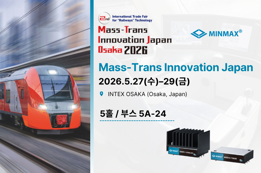 MINMAX는 2026년 5월 27일부터 29일까지 일본 오사카 INTEX OSAKA에서 개최되는 Mass-Trans Innovation Japan Osaka 2026(MTIJ 2026)에 참가합니다. MTIJ는 철도 기술에 초점을 맞춘 중요한 전문 전시회입니다. MINMAX는 5홀 / 부스 5A-24에서 철도 및 산업용 전원 설계의 최신 동향과 적용 요구사항을 소개할 예정이오니 많은 방문 부탁드립니다.